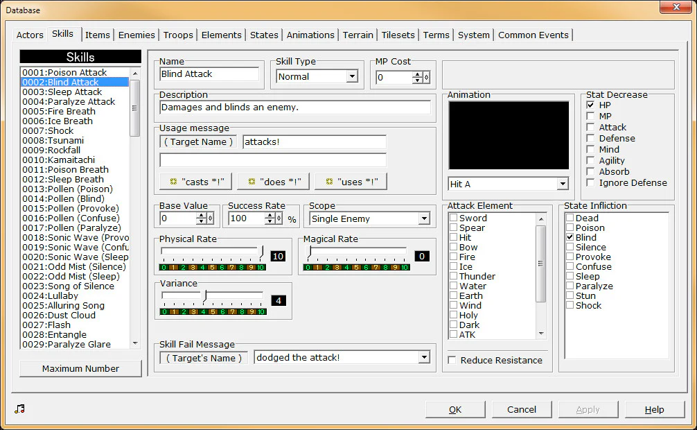Virtually everything in the engine is managed through a simple point-and-click interface. All of your game’s characters, enemies, skills, animations, and equipment are created and stored in an easy-to-navigate database.